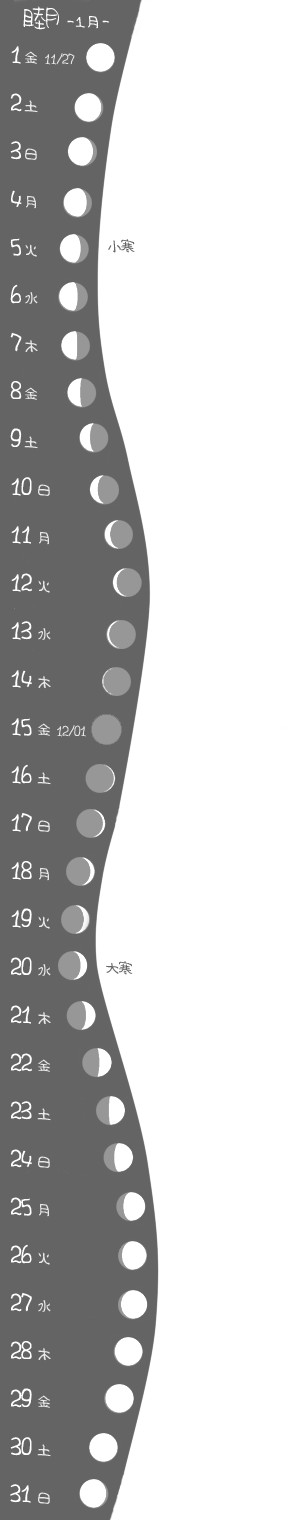 ちょっと分かりにくくなってるけど、1月1日と30日が満月